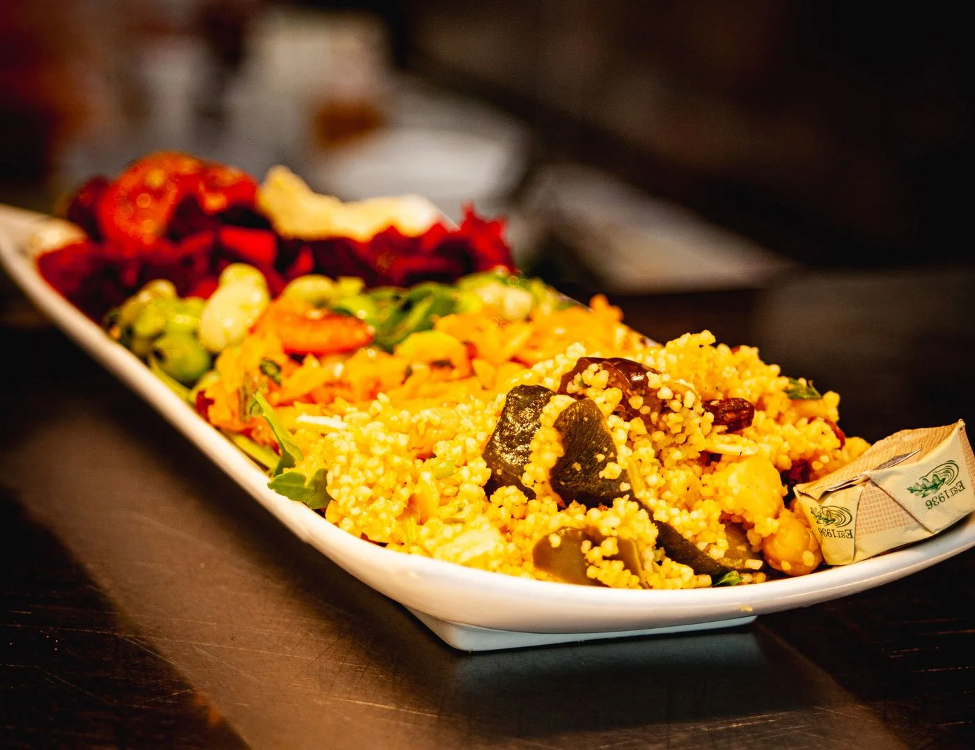 SERVED WITH HOUMOUS, SUNDRIED TOMATOES & CAFE SALADS